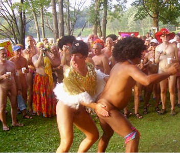 Over 500 gay male nudists attend this annual event in Southeastern PA., held in late August. Most are from other gay nudist groups including B&G and other unaffiliated gay nudists.